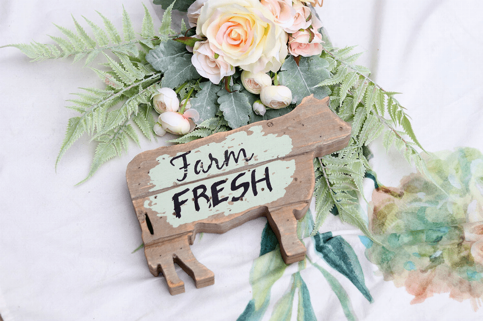 with the word "Farm Fresh" in black text on the green center. Stand it on your shelf or countertop for a great look!