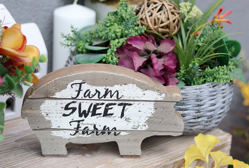 Nothing says you love your home more than Farm Sweet Farm Wood Pig!